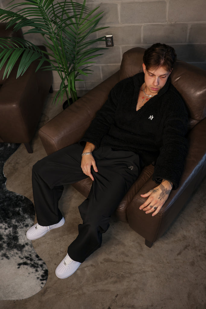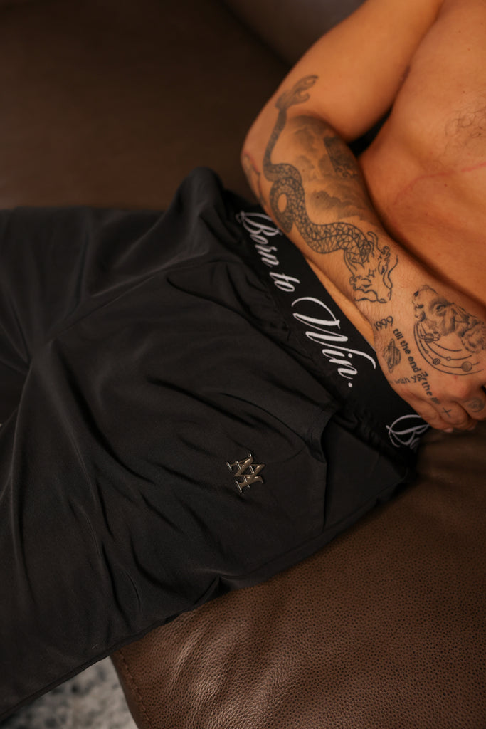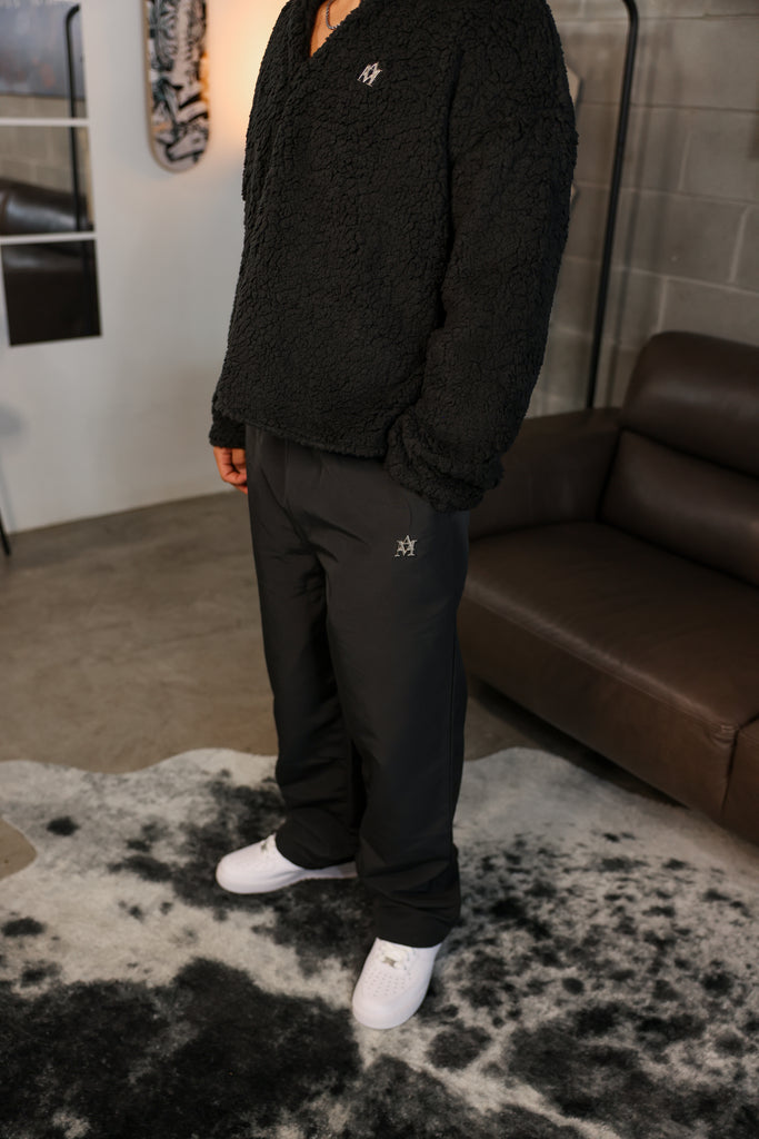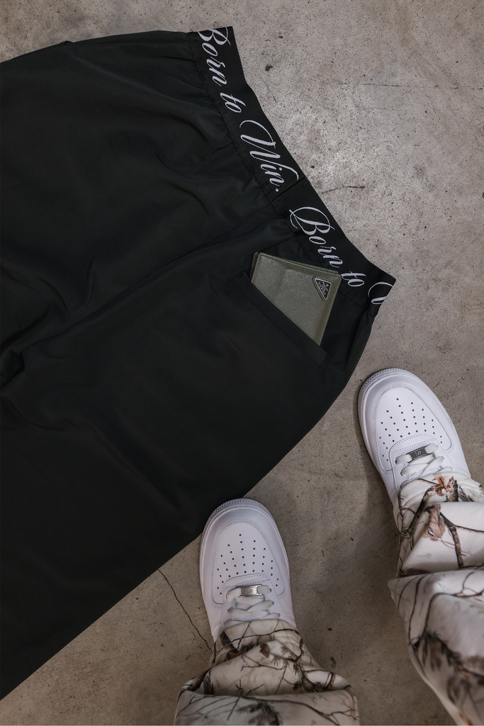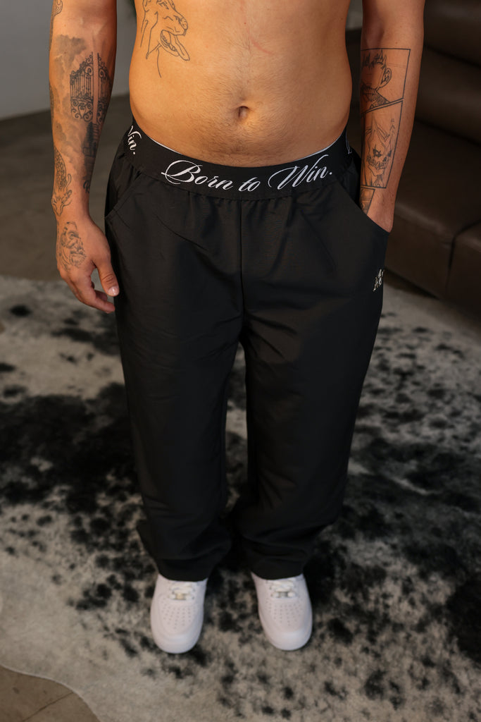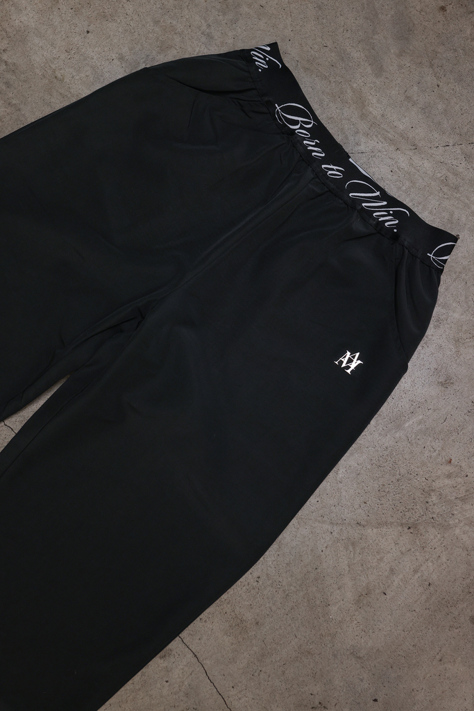 Ultra-Luxury, Baggy, Straight leg Nylon Pants. Features an elastic Born to Win signature waistband, with silver metal MA initial logo detail on left leg. Classic side pockets as well as a hidden back pocket. Full Midweight Ripstop Nylon construction. Your new favorite pants for everyday wear (Extremely Comfortable).