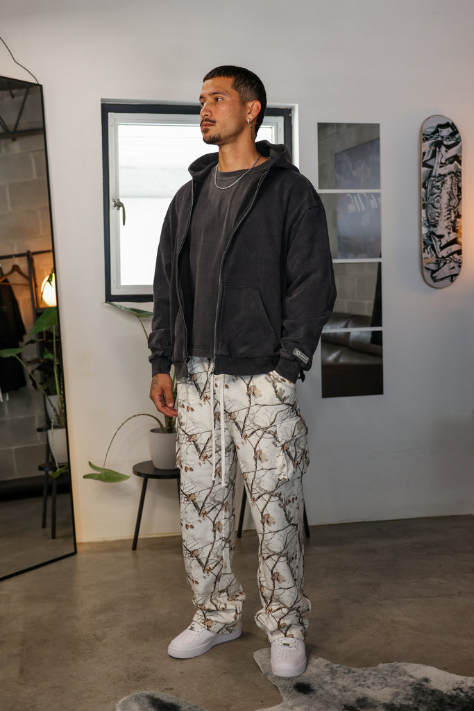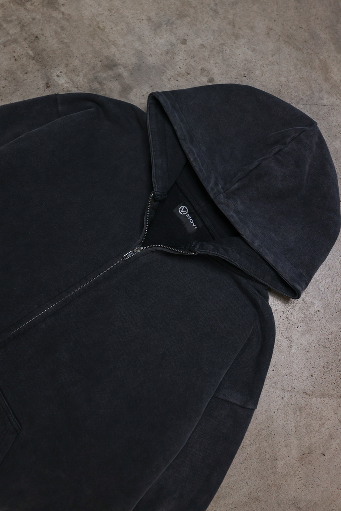 LEGACY ZIPPED HOODIE - WASHED BLACK